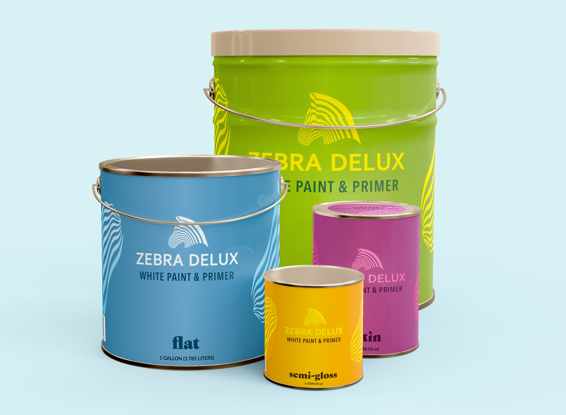 With warehouses and stores located across the globe, Zebra Delux provides paint and supplies targeted towards first-time homebuyers and new DIY'ers. In addition to providing options across several brands, the company launched their own paint solutions in 2023 with quality and affordability in mind. For their first self-produced product, the client wanted a packaging design that is bold, modern, and colorful, thus setting itself apart from the legacy brands they carry.